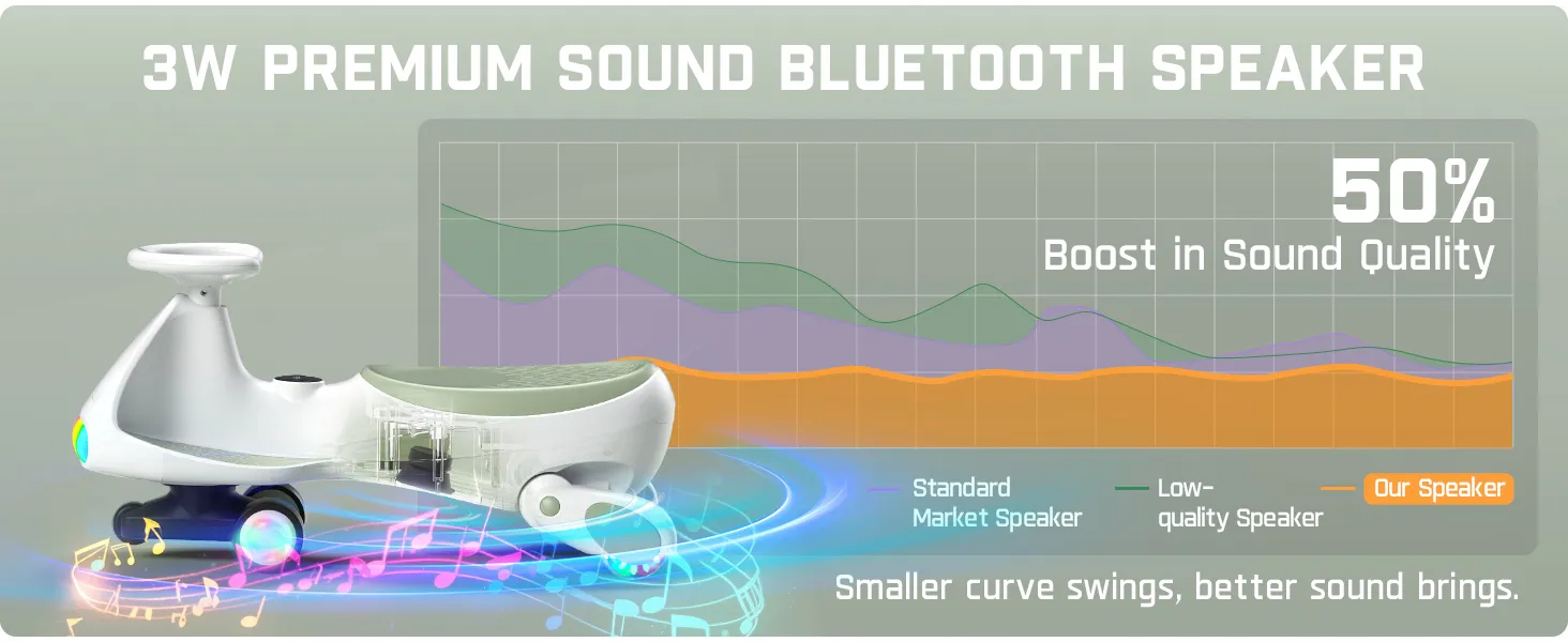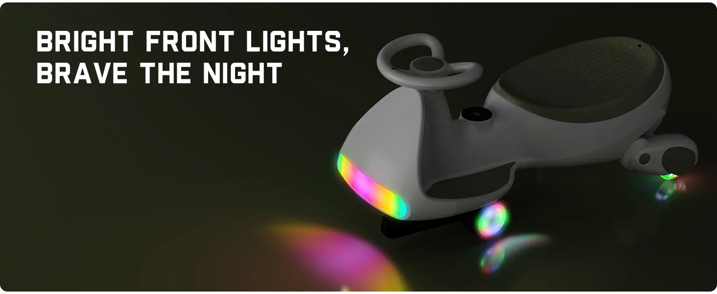 Increased Safety & Bigger Seat: The electric swing car boasts wider 47mm tires for enhanced stability and marks-free indoor play. The unique pyramid-style anti-tip chassis improves balance, reducing the risk of tipping. Designed with high-quality PP materials, it meets ASTM safety standards, ensuring safety for kids. The wider seat supports up to 150 lbs, so the whole family can share in the joy